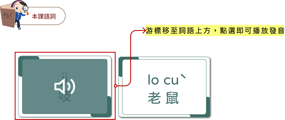 將課文的語詞單獨挑選出來,藉由再次聽讀增加學習者對詞語的理解度。