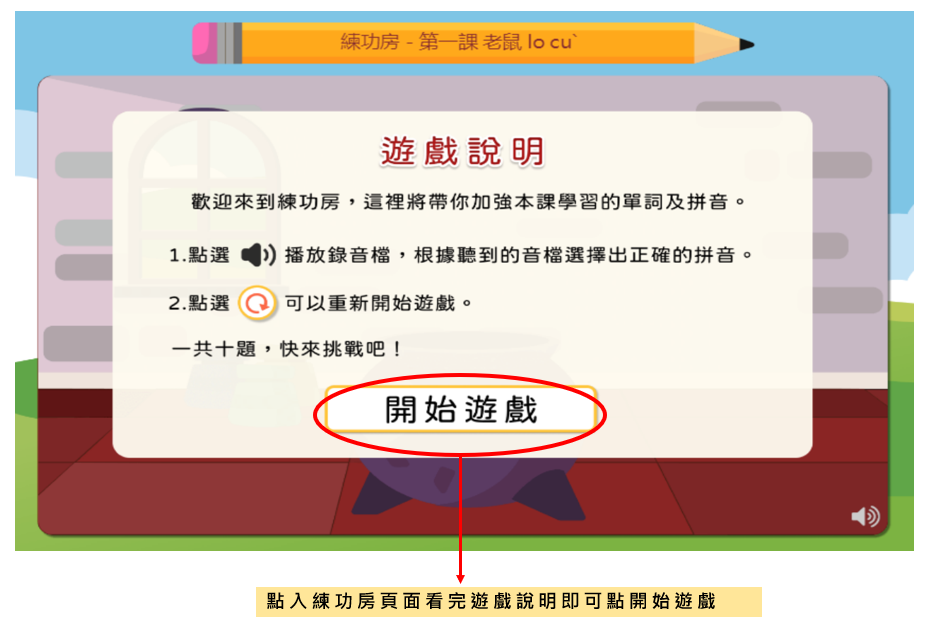 點入練功房頁面看完遊戲說明即可點開始遊戲